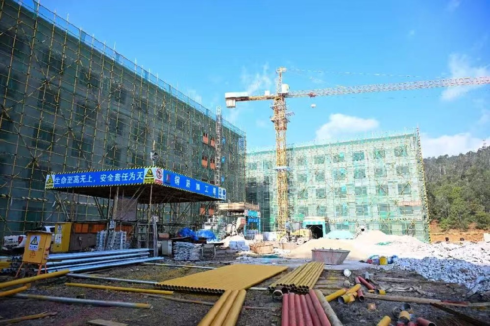 走进红河州老年养护院项目现场,三栋主体建筑拔地而起,简洁大气的外观设计与周边医疗环境相得益彰。