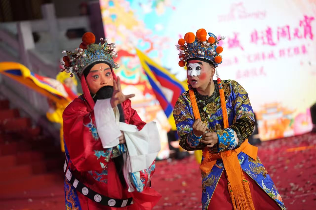 灯月映春城,非遗闹元宵。市民、游客在文庙赏村晚、逛市集、品美食、猜灯谜,在昆明文庙感受烟火气与乡土味,一场既沉浸心灵,又鲜活可触的元宵夜宴在文庙精彩绽放,为市民游客打造一场沉浸式传统文化盛宴。