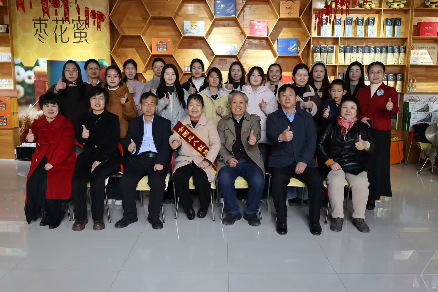 中国企业文化研究会研究员、中国服务文化网总服务师陈步峰教授与电影《孔秀》出品人杨敬等代表中国服务文化网和孔秀团队向陈秀英表示衷心的祝贺和崇高的敬礼。同时,陈步峰教授创作出对联:“太行深处,蜂舞枣林,酿得千家甜蜜; 巾帼肩头,志牵乡梓,铺就万里富途。”激情创作藏头诗“陈秀英甜”:“陈君痴爱小蜜蜂,秀外慧中系百姓; 英雄凤范润天下,甜蜜事业太行红。”陈步峰教授用京东大鼓的形式,演唱这首藏头诗,表示对陈秀英的崇敬点赞和对活动的祝贺。