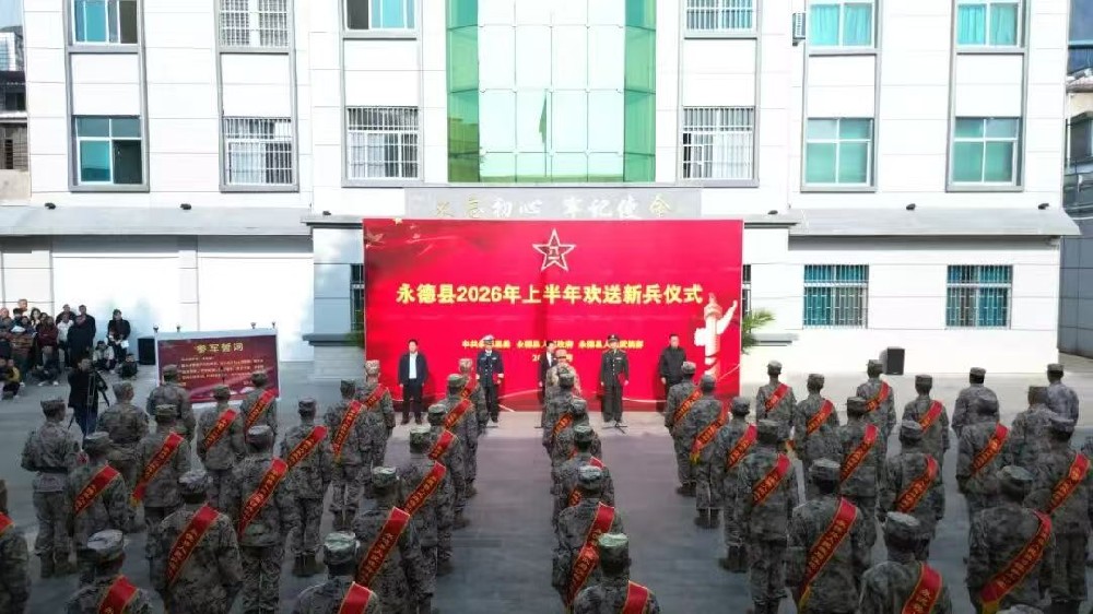 (云南频道记者张亚军 张语嫣报道)春风浩荡,壮志凌云;戎装在身,使命在肩。3月19日,临沧市永德县2026年上半年欢送新兵仪式在县人武部举行,现场军歌嘹亮,一批怀揣报国热忱的优秀青年身着崭新迷彩服、胸戴鲜艳光荣花,精神抖擞、意气风发,即将告别家乡、奔赴军营,开启保家卫国的军旅生涯。县委副书记那娜,县委常委、县人武部政委向鲲,县人武部部长许强,县征兵工作领导小组成员单位负责人及新兵家属齐聚现场共同见证新兵踏上强军报国新征程。