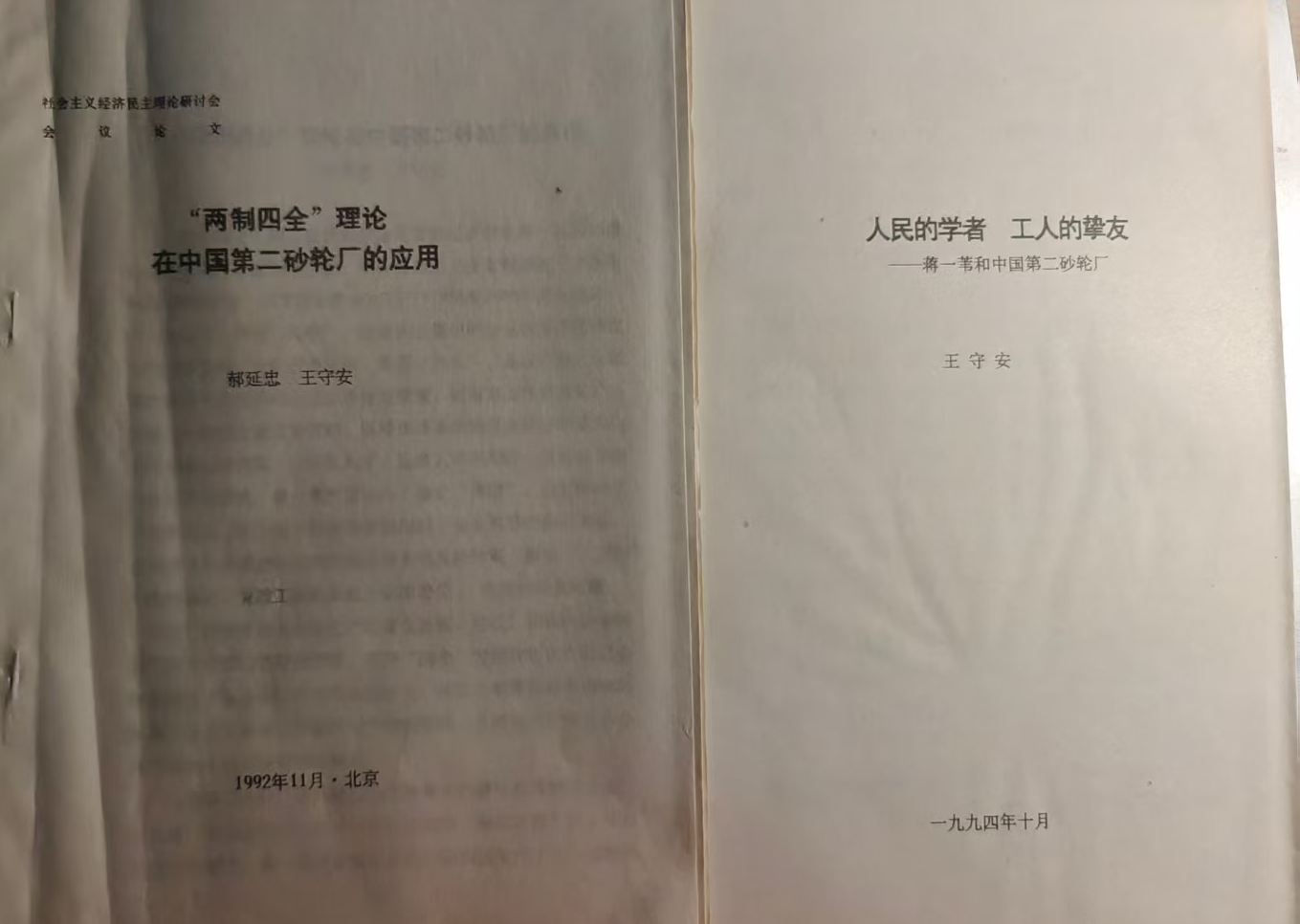 (作者撰写的“两制四全”论文和回忆蒋一苇的文章打印件)