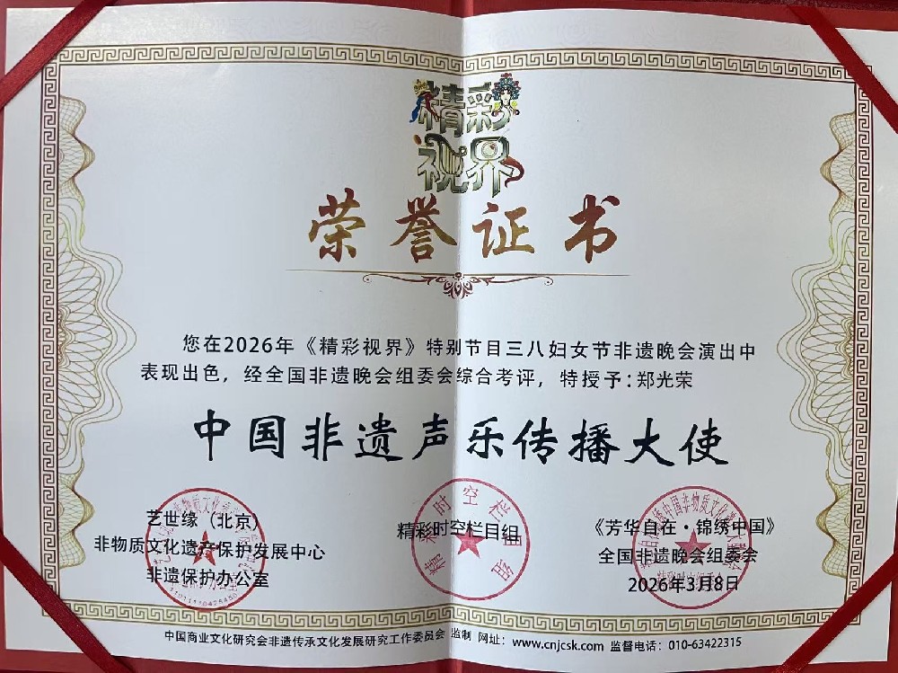 此次获评“中国非遗声乐传播大使”,是对其艺术造诣与文化贡献的高度肯定。未来,郑光荣将继续以声为媒、以艺传情,坚守传承初心,创新表达形式,让非遗吆喝走进更多人心中,让古老传统技艺在新时代持续焕发新生。