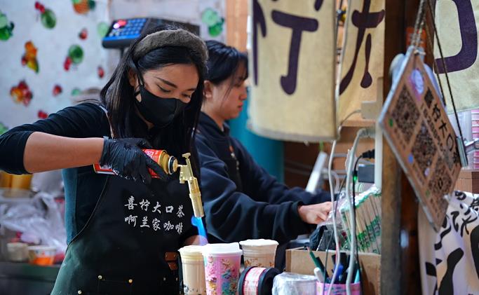 正在收摊的李继凤是最早到这里摆摊的人之一。她说:“奶茶、炒河粉、炒面、铁板鱿鱼等特色小吃很受欢迎,一天摆摊两个小时,能卖一两百块钱,逢年过节还能卖到四五百元。”