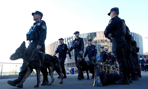 尤其比赛结束后,人流密集时段,警犬巡逻队在人流疏导、秩序维护中发挥关键作用。
