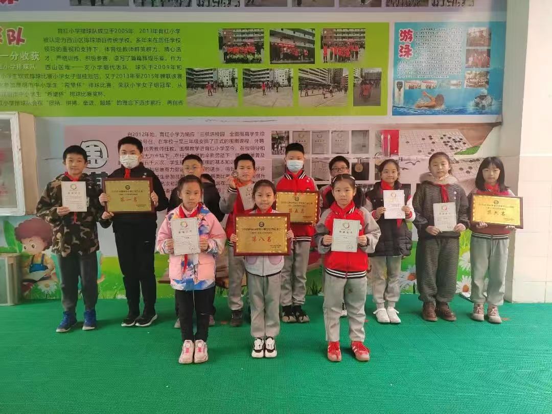 昆明市西山区育红小学男子组方面,陈奕舟、马叶子冉、饶梓洲三位选手在强手如云的赛场沉着应战,发挥稳定,勇夺团体第五名。女子组方面,杨忻蓉、高琳芮、黄诗煜奋勇拼搏,斩获女子甲组团体第六名;在首次设立的小学女子丙组团体赛中,戴泽纾、于菡汐、黄茉沁三位小将发挥出色,取得团体第八名的佳绩。