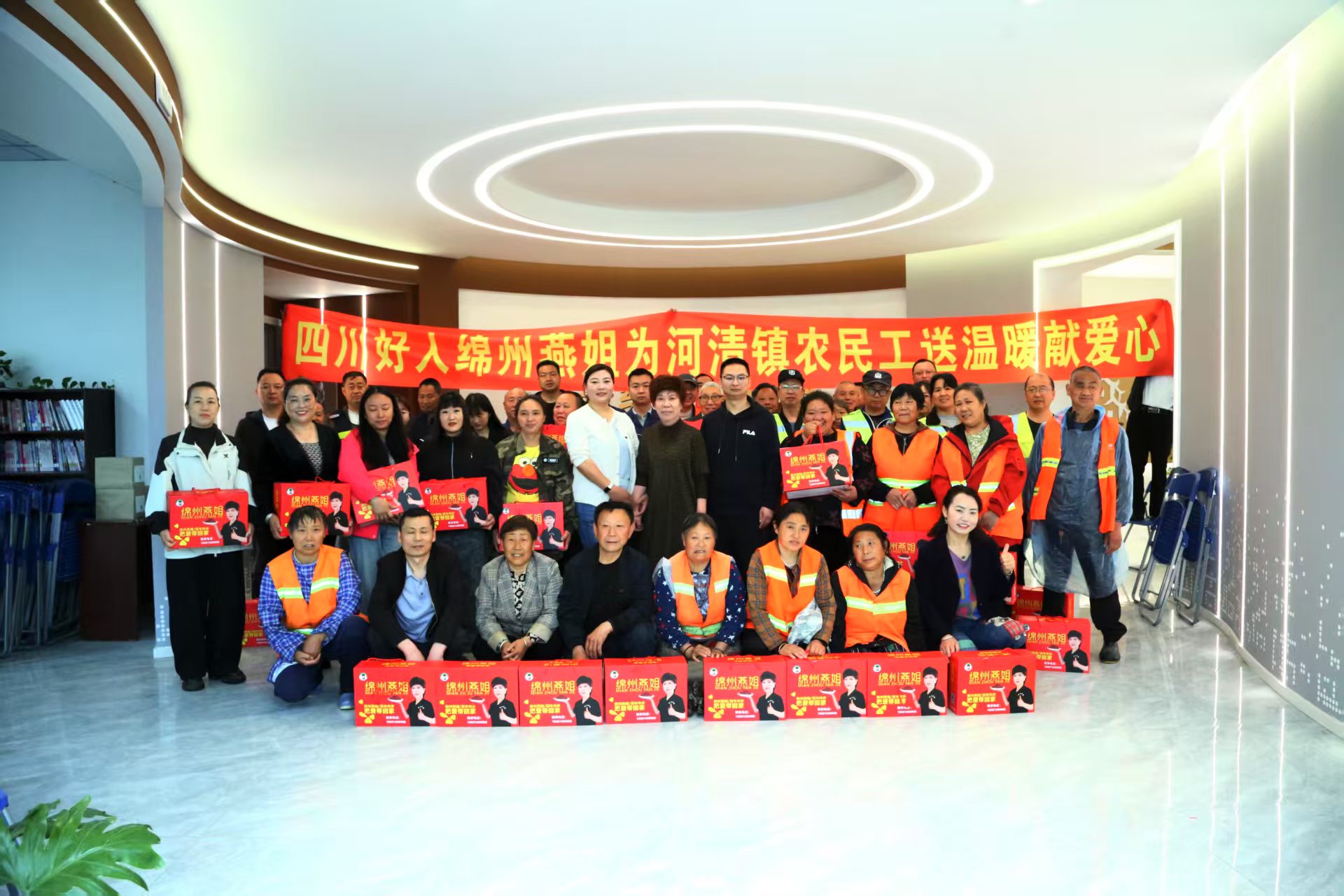 在五一节来临之际,2026年4月28日早上6点钟,人称“绵州燕姐”的陈燕女士一大早就起床收拾好东西,他们一行人冒着风雨从绵阳市出发前往安州区河清镇富乐社区,经过一个半小时的奔波终于到达了目的地,得知燕姐今天要来,河清镇富乐社区党委书记、主任傅友琼,便民服务中心副主任彭杰都提前在社区服务中心门口等候着燕姐的到来,没有过多寒暄,燕姐为社区的环卫工人和企业员工送上她亲手准备的节日礼物,同时感谢他们为城市环境和建设作出贡献。安州区秀水镇李氏万兴《红酥》厂工人听说燕姐要到河清镇做公益,一早赶到现场,把刚制作好的红酥送给燕姐,表示感谢!