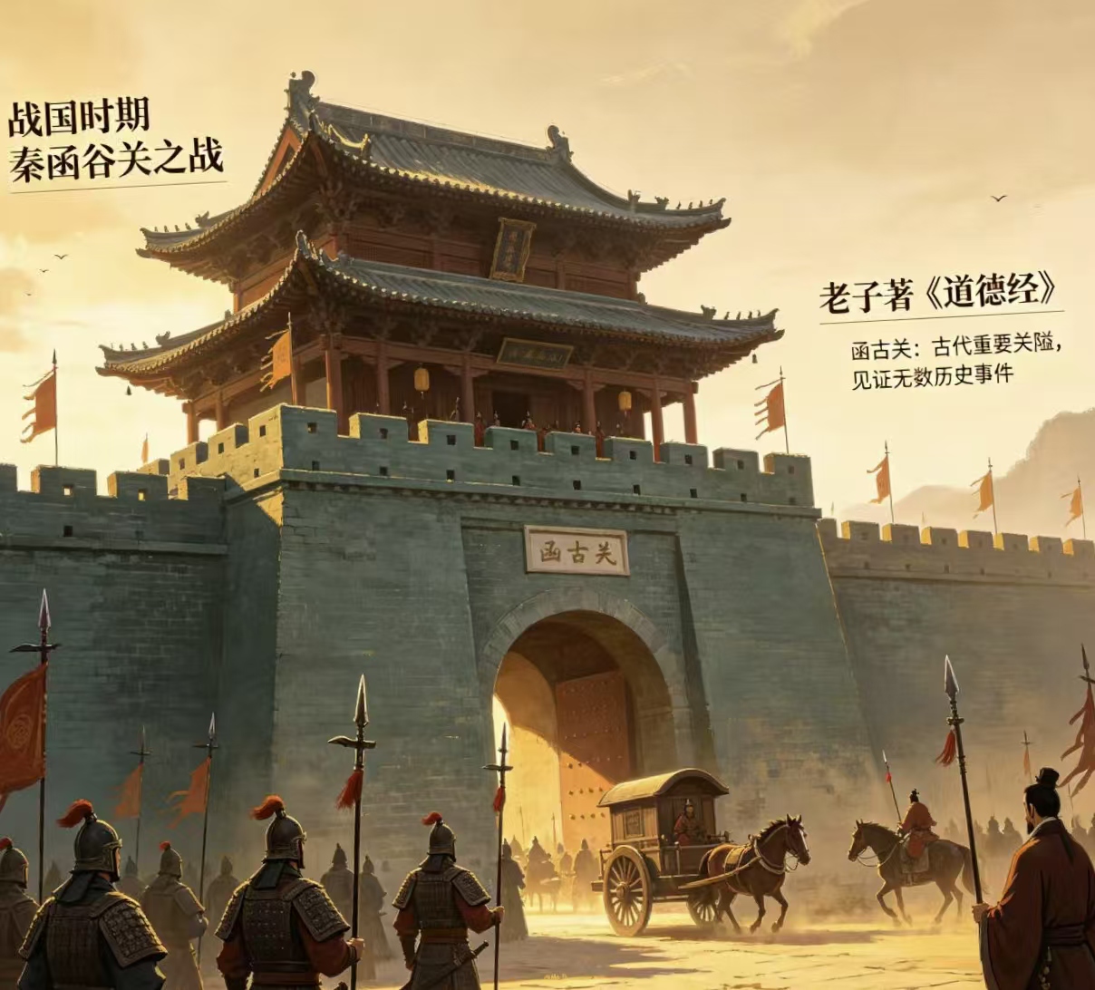 如今的函谷关景区内,挺拔伟岸的老子圣像巍然屹立,诉说着圣贤智慧;三百多米长的道德天书,以篆体镌刻《道德经》全文,气势恢宏;太初宫、大道院、灵符遗址等景点错落有致,每一处都承载着道家文化的深厚内涵。“紫气东来”“鸡鸣狗盗”“白马非马”等脍炙人口的成语典故,皆源于此,让这座雄关不仅有金戈铁马的阳刚之气,更有温润绵长的文化之韵。