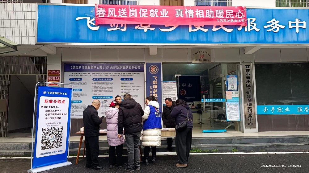为扎实做好稳就业、保就业工作,精准对接企业用工与群众求职需求,2026年2月10日,恰逢北方小年,春节的气息渐浓,飞剑潭集市上人潮涌动。宜春市袁州区飞剑潭乡“5+2就业之家”成功举办线下招聘会暨就业创业政策宣传会,把岗位、政策与服务送到群众家门口,切实打通就业服务“最后一公里”。