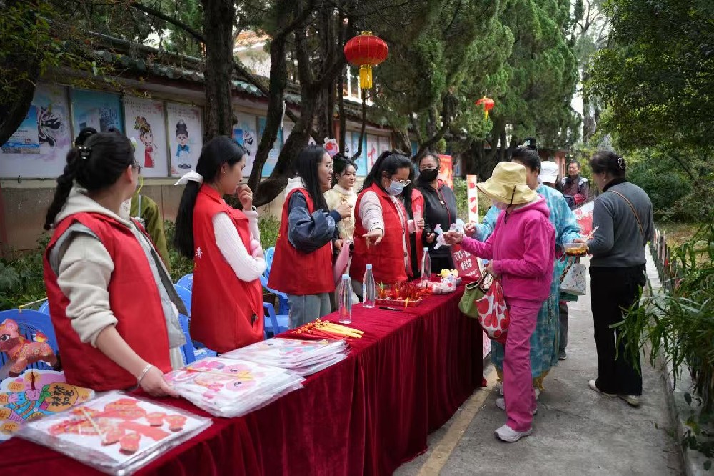 作为昆明市2026年“春季村晚”的重要活动,“灯月映春城·非遗闹元宵”雅韵市集,以“文化传承+互动体验+新春氛围”为核心,设置非遗市集与乡村好物展区,汇集15项昆明本土非遗项目,热闹的市集里,剪纸、糖画、瓦猫、面塑、掐丝珐琅彩画等非遗项目依次排开,传承人现场展示精湛技艺,让传统工艺在指尖焕发新生。