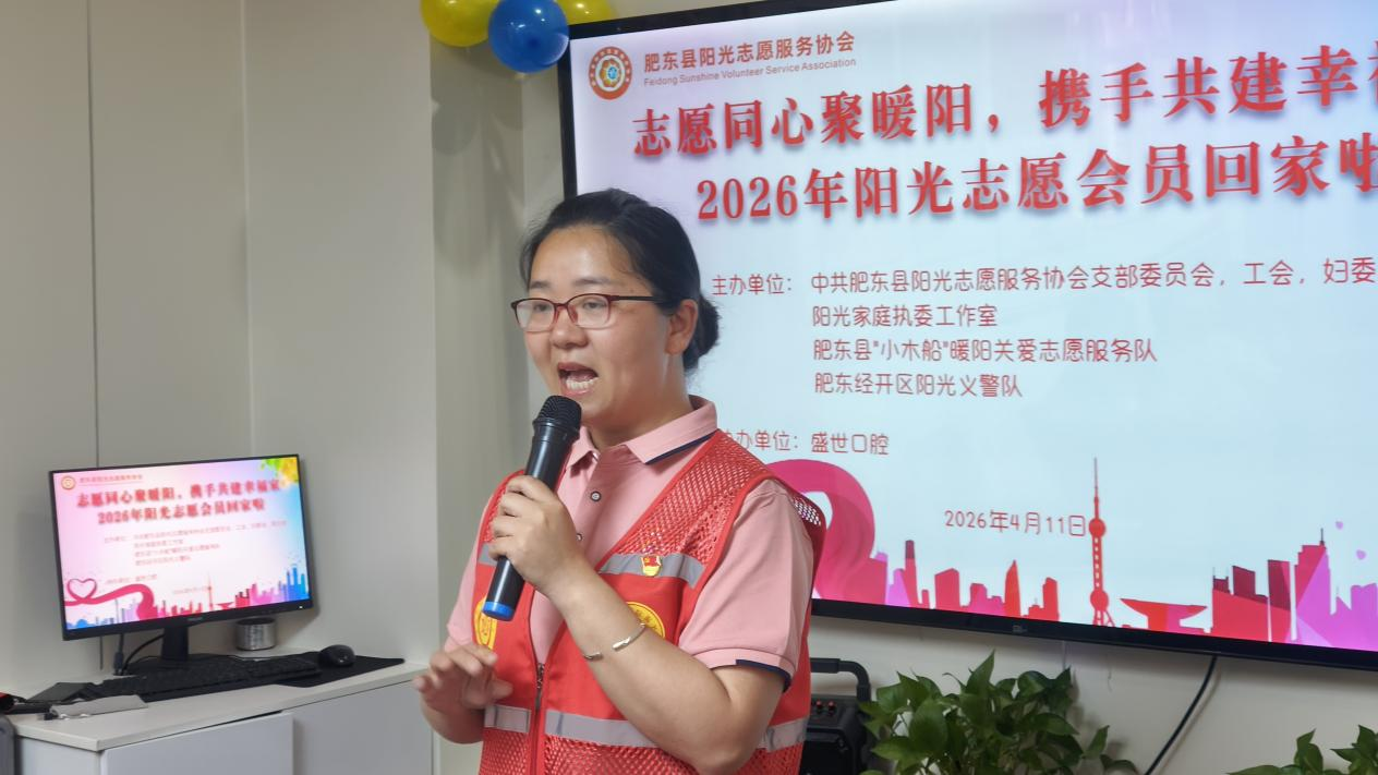 (安徽宿州讯:李志领 肖狮子)411日上午,安徽省合肥市肥东县盛世口腔会议室内暖意融融、笑语盈盈,肥东县阳光志愿服务协会第十三期“志愿同心聚暖阳 携手共建幸福家”志愿者回家暨4份集体生日会在这里温情启幕。近二十名志愿者欢聚一堂,在轻松温馨的氛围中破冰交流、学习技能、共庆生辰,凝聚志愿力量,传递温暖情谊。