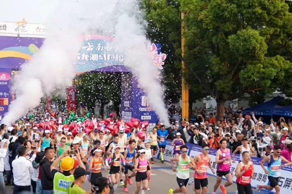凤凰新闻网络电视台(记者丁琼玉)4月19日上午“神豆花开 石屏等你”2026云南白药石屏异龙湖马拉松鸣枪开跑。